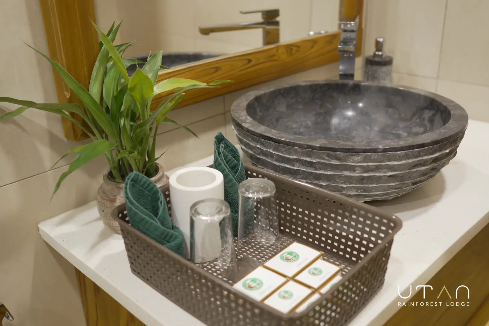 As part of their commitment to reducing waste, Utan Rainforest Lodge and Sukau Rainforest Lodge do not provide disposable toiletries like toothbrushes and toothpaste for guests.